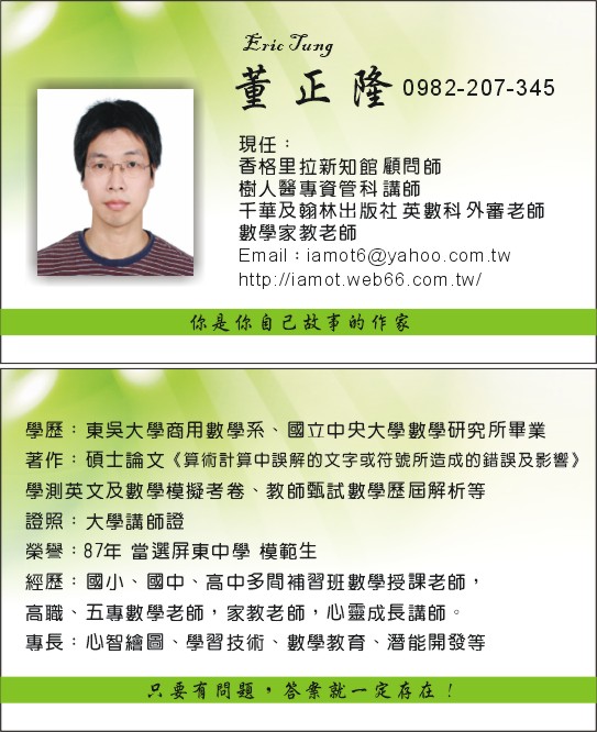 所以我學了不少方法,目的只有一個,就是希望能夠在學習之外,提供給家長更多額外的服務,有物超所值的感覺。